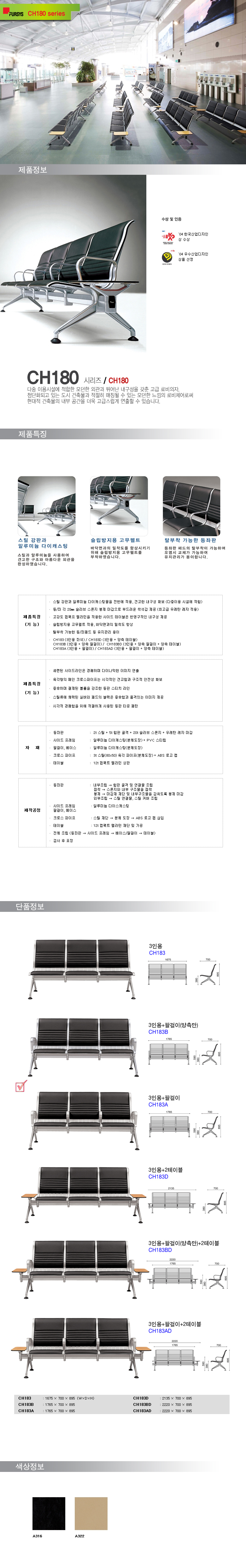ÆÛ½Ã½º CH180series ·Îºñ¿ë ÀÇÀÚ(Lobby chair) 3Àοë ÀåÀÇÀÚ+ÆÈ°ÉÀÌ (CH183A)