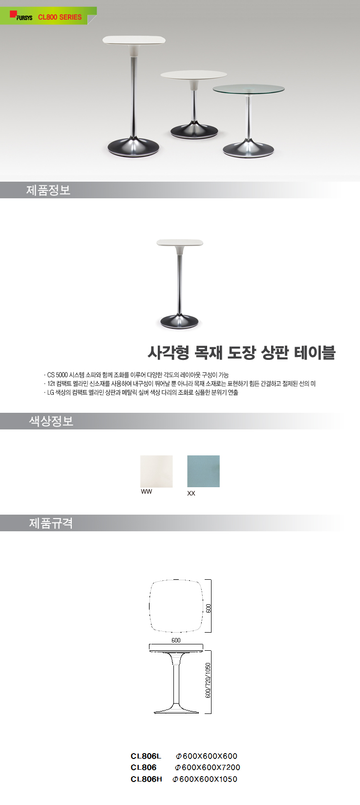 ÆÛ½Ã½º SOFA TABLE(¼ÒÆÄ Å×À̺í) »ç°¢ Å×À̺í (CL806L/CL806/CL806H)